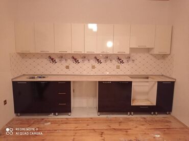 Evinizə uyğun ölçülərdə L formalı mətbəx komplekti: həm açıq krem monoxrom, həm də ağ-parlaq və qəhvəyi ağac teksturlu variant mövcuddur. Geniş saxlama, funksional planlama və səliqəli görünüş.