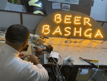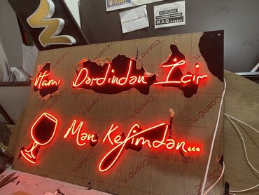 Neon işıqlı yazıların hazırlanmadı neondan İstənilən söz ve ya, şüarları hazırlanması münasib qiymete