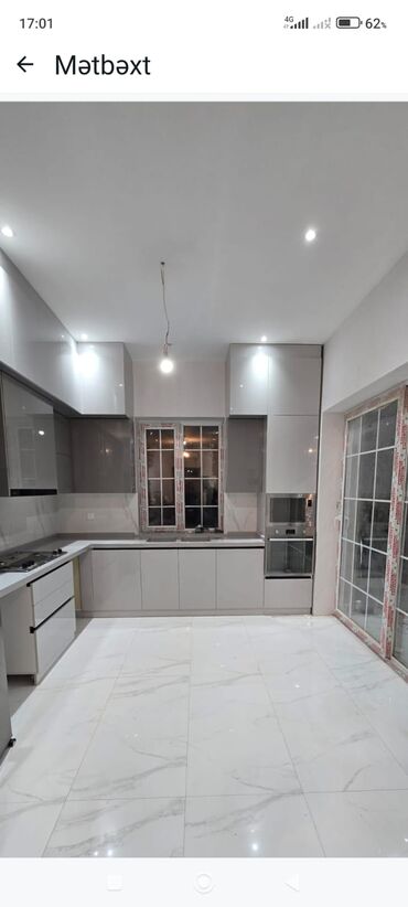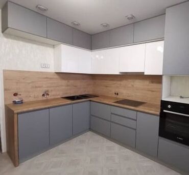 - Mətbəx mebeli: L formalı və düz xəttli həllər, üst-alt dolablar, inteqrasiya olunan soba/miç, ocaq və s. üçün nişlər. Mat və ya parlaq fasadlar, ağ-boz palitra, taxta teksturalı stolüstü və panel.