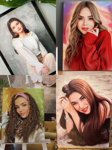 - Fərdi portretlər: fotodan hiperreal və ya rəqəmsal illüstrasiya üslubunda portretlər. Tək və ya bir neçə şəxsin portreti, yarımfiqur/fiqur kompozisiyaları.