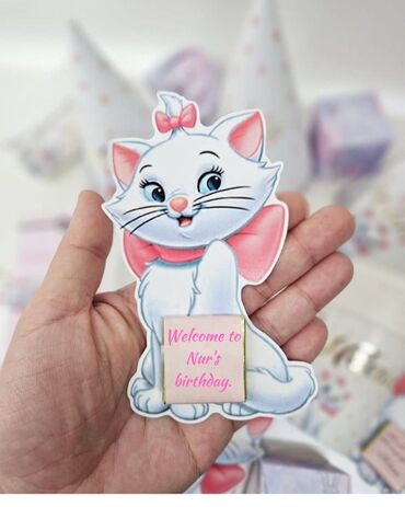 - Dizayn nümunələri: uşaq ad günü “Birthday Party” qarşılama kartları, cizgi qəhrəmanlı və peri mövzulu variantlar.
