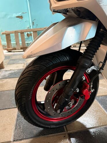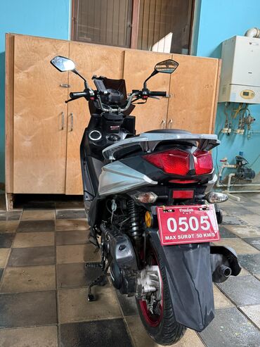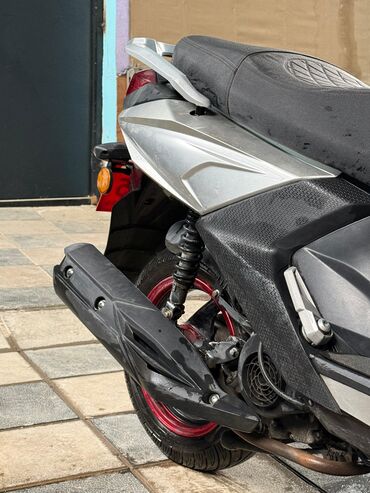 Skuter/moped – şəhər içi rahat sürüş üçün. - Rəng: qara-qırmızı - Arxa oturacaq tutaçı (alyumin rəngli rels) və sərnişin üçün ayaq dayaqları - Arxa ikiqat stop işığı və dönmə siqnalları - Səsboğu...