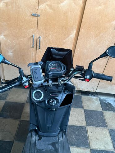 Model: Repsol üslublu şəhər skuter/moped Xüsusiyyətlər: - Rəng: qara-qırmızı ağ aktsentlərlə, idman tipli Repsol stilində body-kit - Ön LED işıqlar və gündüz işıqları, mor tonlu panel işıqlandırma...