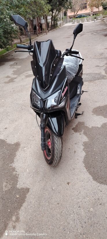 - Mühərrik: benzinli skuter sinfi (CVT avtomatik ötürmə), elektrik və ayaqla start düymələri üçün yer