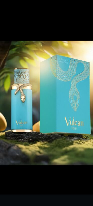 - Firuzəyi “Vulcan Feu” – qızılı detallar, naxışlı qapaq; uyğun rəngli qutu üzərində ilan illüstrasiyası