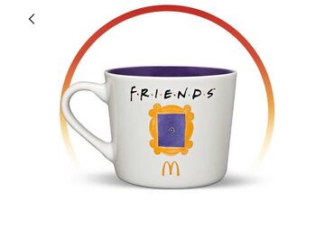 - Kupa: Ağ keramika, bənövşəyi daxili. Üzərində “F.R.I.E.N.D.S” yazısı, qapı çərçivəsi illüstrasiyası və McDonald’s loqosu.