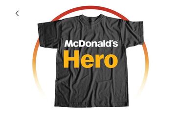 - T‑şört: Qara rəng, ön hissədə iri “McDonald’s Hero” çapı. Klassik yuvarlaq yaxa, qısa qol.