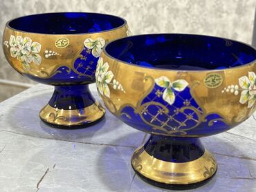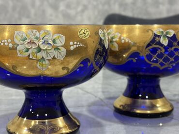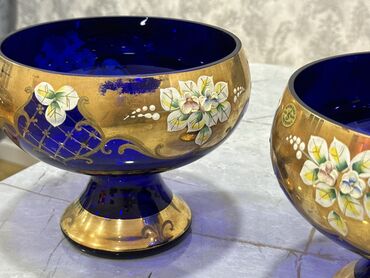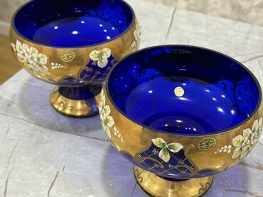 Yaşıl şüşədən hazırlanmış bu qablar qızılı naxışlar və ağ çiçək detalları ilə bəzədilmişdir. Bogema 1ededi 30azn