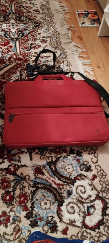 - Qırmızı çiyin kəmərli noutbuk çantası