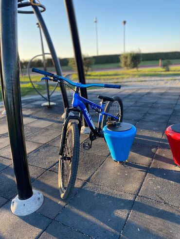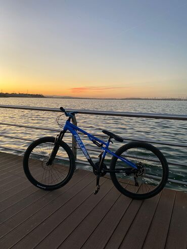 Satılır: şəhər və yüngül off-road üçün dağ velosipedi - Brend/seri: BMX (çərçivədə loqo) - Çərçivə: yüngül ərintili, idman geometriyası; rəng: boz-mavi qradient - Təkərlər: 27.5" (təxmini), geniş ...