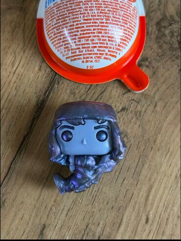 Kolleksiya fiquru – mini vinil oyuncağı - Material: sərt vinil/plastik - Ölçü: təxminən 4–5 sm hündürlükdə mini fiqur - Dizayn: iri başlı, chibi/Pop! tərzində personaj; bənövşəyi–mavi metalik, par...