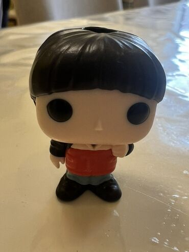 Kinder joy Stranger Things temalı kolleksiya fiquru – Eleven (Funko üslubunda miniatür). - Dizayn: Qara iri gözlər, qısa tünd saç, açıq rəngli xalat/kleidka və çəhrayı çəkmələr detalı. - Material:...
