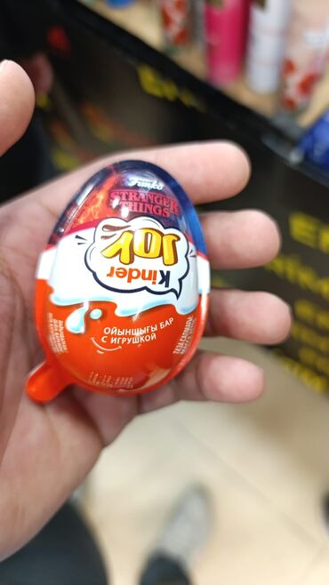 - Funko və Stranger Things temalı Kinder Joy sürpriz yumurtaları. Qablaşdırmanın üzərində “Funko” və “Stranger Things” loqoları var.