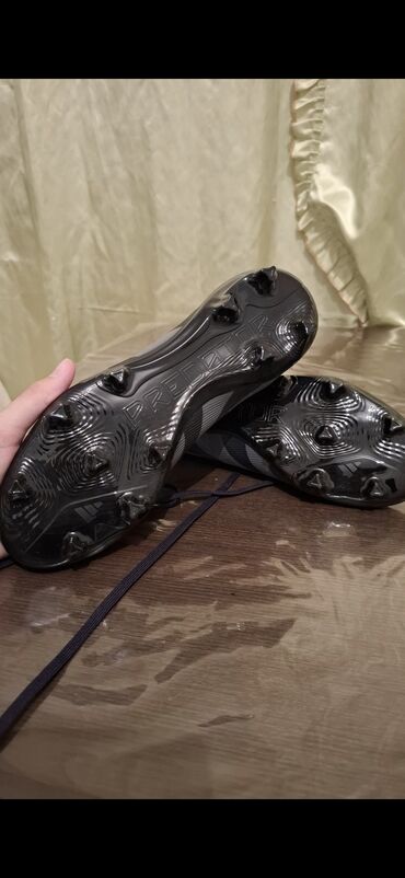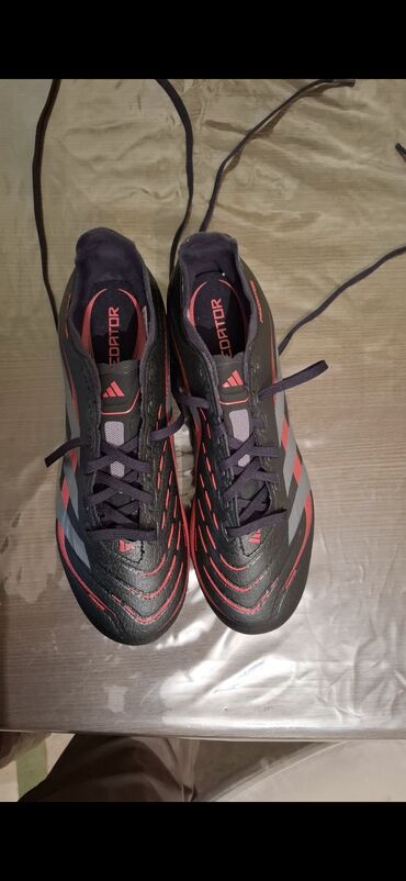 Qara rəngli, Adidas Predator firmasının futbol ayaqqabıları. Yan tərəflərində boz rəngli zolaqlar və qırmızı rəngli dizayn elementləri var. Ot örtüyü olan meydançalarda istifadə üçün idealdır. Chicagodan alınıb 41,5 razmerdədir. Heç işlənilməyib. 150 manat qiyməti var. Əla maldır.