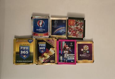 Kolleksiya həvəskarları üçün müxtəlif turnirlərdən və klublardan stiker paketlərinin zəngin seçimi. Seriyalara uyğun albomlara yapışdırmaq və ya dəyiş-düyüş üçün uyğundur.