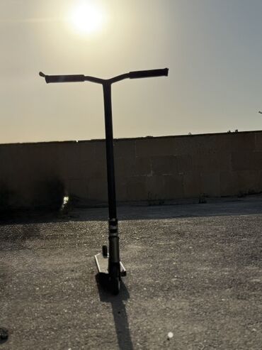 Şəhər içi gediş-gəliş üçün mexaniki skuter ehtiyaci olan gelib gotursun - Tiplə: Ayaqla itələnən (manual) skuter - Rəng: Qara gövdə, metal rəngli gövdə platforması - Sükan: T‑forma, sabit hündürlü...