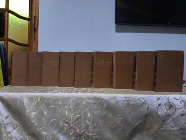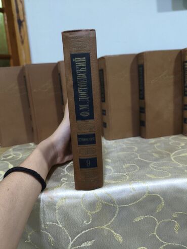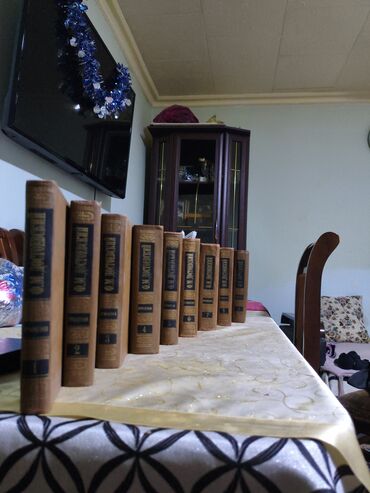 Tam komplekt, ardıcıl nömrələnmiş 10 cild rus dilində Dostoyevski muzeyi səviyyəsində kitabxana görünüşü yaradır.