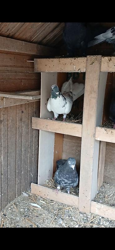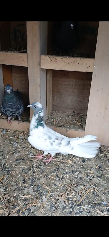 Satılır: ev göyərçinləri - Növ: dekorativ/uçuş göyərçinləri - Rənglər: - Qarabaş-ağ (ağ bədən, başda mavi ləkə, quyruqda qara uclar) - Tünd bozumtul (boyunda yaşıl-bənövşəyi parıltı) - Xüsusi...