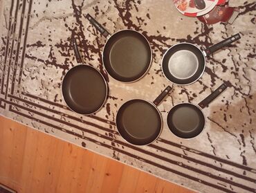 Tava dəsti – 3 ədədi 10 man - Material: qalın alüminium gövdə - Diametrlər: təxmini 22–26 sm arası (üç müxtəlif ölçü) - Sap: istiliyədavamlı plastik sap, möhkəm birləşmə - Düz, geniş dib – bərabər...