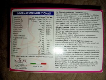 - Hamiləlik dövrü üçün balanslaşdırılmış vitamin-mineral kompleksi. Qablaşdırmada “Dərman vasitəsi deyil” qeyd olunur.