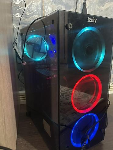 - Sistem bloku: şüşə yan panel, RGB ventilyatorlu korpus (öndə 3, yanda 1 ədəd). “izoly” brendi yazılı korpus görünür. Ön USB və audio çıxışları, arxa geniş soyutma.