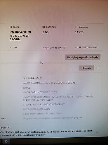 - Prosessor: Intel Core i5-3330, 3.00 GHz, 4 nüvə