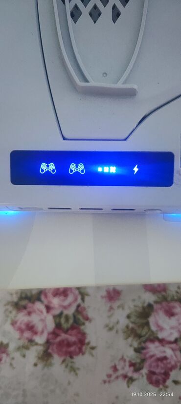 - İki ədəd DualSense şarj yuvası: Ön paneldə LED göstəricilər (hər nəzarətçi üçün) və enerji simvolu.