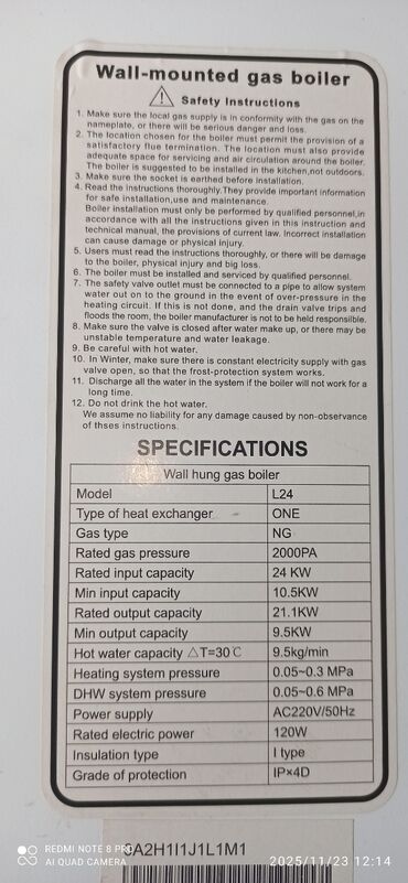 Garant Ferioni divara asılan qaz kombi24demek olarki tep tezedi 1il işleyib tecili kocle aleq3der satilir