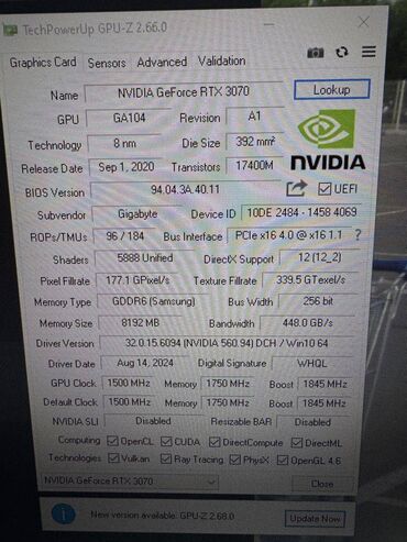 3060 12GB İdeal vəziyyətdədir Furmakda 66 dərəcəni keçmir. - Brend: Gigabyte - Seriya: EAGLE - Soyutma: 2 böyük fan (WindForce dizaynı), alüminium radiator, qara backplate dizaynı - Qoşulma: PCIe q...