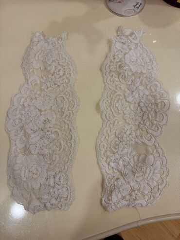Gəlinlik + iki ziyafət geyimi dəsti razmerler L-XL gedir 1) Ağ gəlinlik: 350 Azn - Klassik A-kəsim, ətəyi həcimli - Üzərində incə güllü naxışlı krujeva - Krujevalı yarı şəffaf uzun qol - Sinə və ...