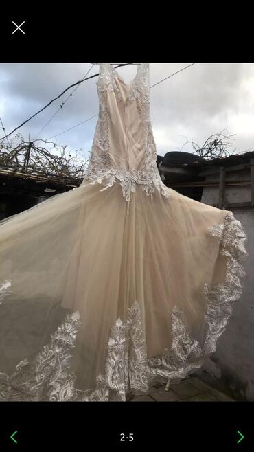 Gəlinlik + iki ziyafət geyimi dəsti razmerler L-XL gedir 1) Ağ gəlinlik: 350 Azn - Klassik A-kəsim, ətəyi həcimli - Üzərində incə güllü naxışlı krujeva - Krujevalı yarı şəffaf uzun qol - Sinə və ...