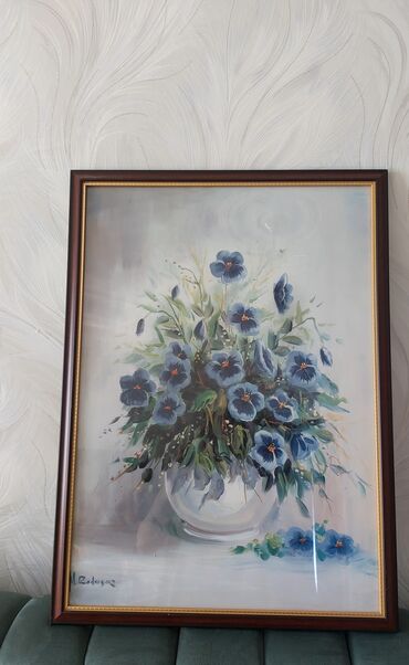 Çərçivəyə salınmış, vazoda bənövşələrin təsvir olunduğu rəsm əsəri. Rəsm, otağa incəlik və zəriflik qatan sakitləşdirici bir atmosfer yaradır. Divar dekorasiyası kimi istifadə üçün idealdır.