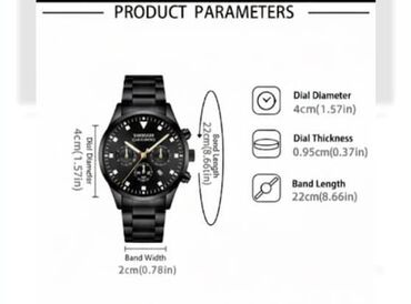 - Korpus və qolbağ: paslanmayan poladdan, qara rəngli metal qolbağ