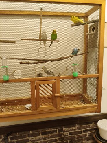 - Daxildə müxtəlif diametrli təbii budaqlardan 7+ perch, oyuncaqlar/halqa.