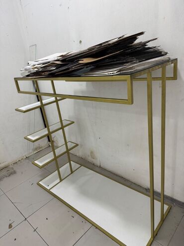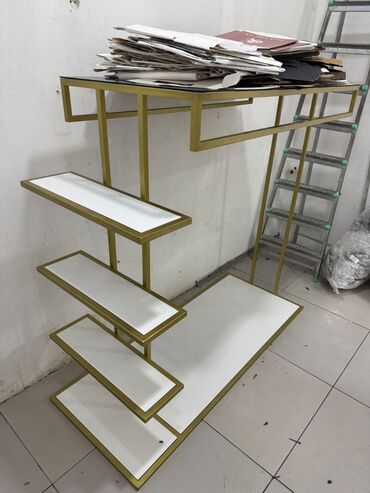 Şüşə vitrin dolabı (2 ədəd) - Material: temperli şəffaf şüşə qapılar və rəflər, MDMF/laminat korpus (ağ və ağac fakturası kombinasiyası) - Ön hissə: dekorativ xətt elementləri və kvadrat metal tut...