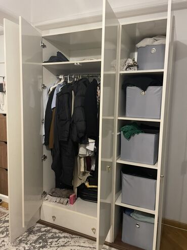 Geyim, ayaqqabı və aksesuarların səliqəli təşkili üçün əlverişli həll. Yataq otağı və dəhliz üçün uyğundur. Rəf və askı kombinasiyası gündəlik istifadəni rahatlaşdırır, güzgü isə geyim seçimini asanlaşdırır. Şkafın ölçüləri vizual olaraq böyük saxlama həcmi təqdim edir.
