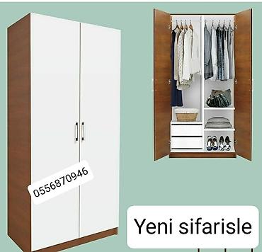 - Daxili planlama: paltar asmaq üçün rels, rəf bölmələri, ayaqqabı və aksesuar üçün yer; alt hissədə 2 geniş çekmece