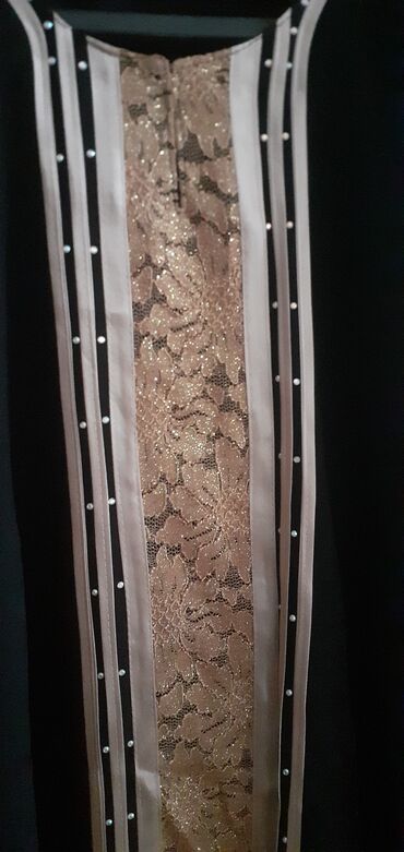 Brend: Golden Needle Couture Model: Qara naxışlı axşam/gecə paltarı - Rəng: Qara krujeva effektli üst qat, açıq krem rəngli astar - Siluet: Korsetvari üst hissə, beldən açılan A-kəsim ətək - Deta...