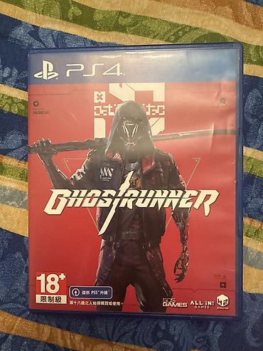 Komplekt: Plastik mavi PS4 qutusu, üz qabığında Ghostrunner örtüyü.