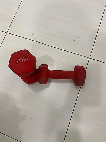 Qırmızı rəngli vinil örtüklü dambellər – 3 kq - Çəki: hər biri 3.0 kq (şəkildə işarələnib) - Forma: altıbucaqlı uclar – yerə qoyulduqda yuvarlanmır - Örtük: sürüşməyə davamlı, səssiz və döşəməni c...