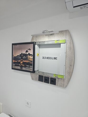 - Divara bərkidilən dekor panel üzərində quraşdırma; üst hissədə inteqrə LED işıqlandırma.