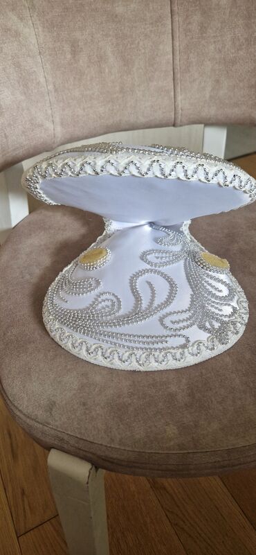 - Bəzək: gümüşü rəngli muncuq və naxışlı aplikasiyalar, haşiyədə krujeva və muncuq hörgüsü