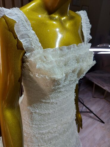 Gəlinlik – güpür və çiçək işləməli - Rəng: ağ az moloçnuluq var Amerikadan sifarişlə gətizdirilib. 1 dəfə geyinilib Çox ideal vəziyyətdir. Güpür çiçək işləməlidir çox zərif gəlinlikdir. 36-38 bədə...