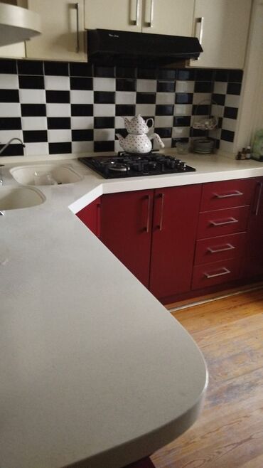 - Kiçik tumba/komodin: üstü ağ, alt çekməce qırmızı rəngdə.