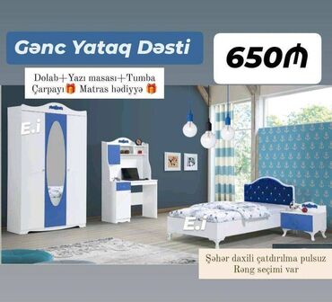 Gənc Yataq Dəsti 650AZN💥 ✔️Rəng seçimi var ✔️Dolab ölçü 200x120x47