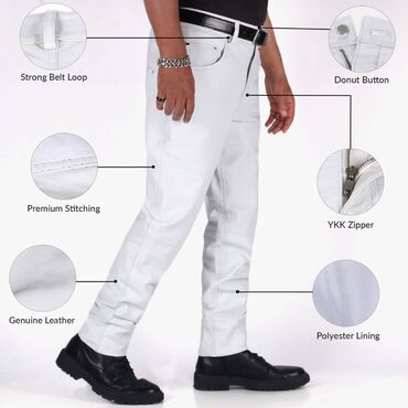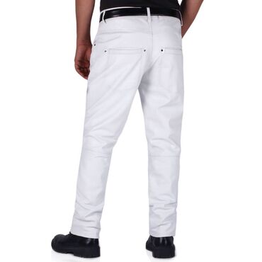 Ağ rəngdə, elastik bel hissəli və bağcıqlı kişi şalvarı. Yanlarda əlavə rahatlıq üçün cibləri var. Arxada iki yamaq cib yerləşir. Bu şalvar gündəlik geyim üçün uyğundur.trend yoldan alinim material...