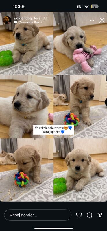 Qızılı Retriver Balası 🫠Golden Retriver Balaları Tam Sağlam Orijinal Aktiv İtlərdir Erkək Dişi Var 2 Ay Reyal Alıcılar Tələsin!🫠