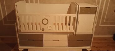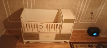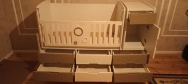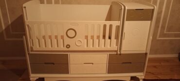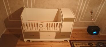 Beşik kimi də istifade etmək olar,kənarları var istiyən olsa veriləcək.Şkafı da çıxarmaq olur,içi çox genişdir.üstündə biraz cızıqlar var.Beşik ölçüsündə matrası da var o da verilir.Tək problemi si...