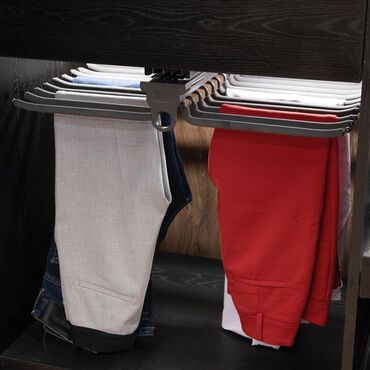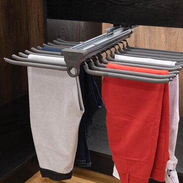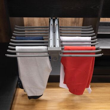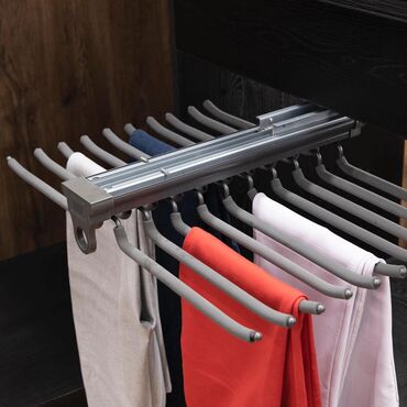 Raylı Mexanizm: Məhsul, teleskopik raylar üzərində hərəkət edir, bu sayədə pantolonları dolabın kənarına çəkərək asanlıqla asma və ya götürmə imkanı təqdim edir.