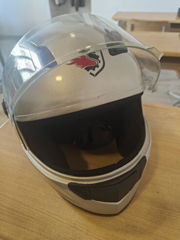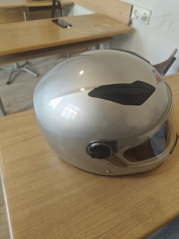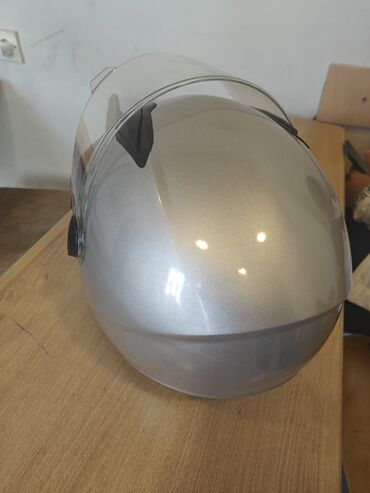 Motosiklet dəbilqəsi – qapalı (full-face) model - Rəng: metalik tünd mavi - Korpus: aerodinamik, parlaq örtüklü sərt qabıq - Vizor: şəffaf, geniş bucaqlı; yan tərəfində sürətli açılıb-bağlanma mex...